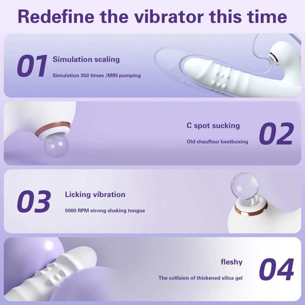 Thrusting Vibrator Dildo Rotating Telescopic Vagina G Spot Massage Sucking